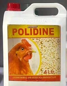 Polidine (povidone-iodine) is an antiseptic and disinfectant used in poultry production to control harmful microorganisms. It helps sanitize drinking water systems, equipment, and housing surfaces, and is also used for wound cleaning and navel care in chicks. By reducing bacterial, viral, and fungal load, it supports disease prevention and improves overall flock hygiene and biosecurity.